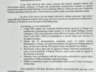 Karachi (HRNW)- Sindh Building Control Authority orders registration of FIRs against builders and owners involved in illegal constructions. The Sindh Building Control Authority (SBCA) has initiated strict action against builders and plot owners involved in [… ]