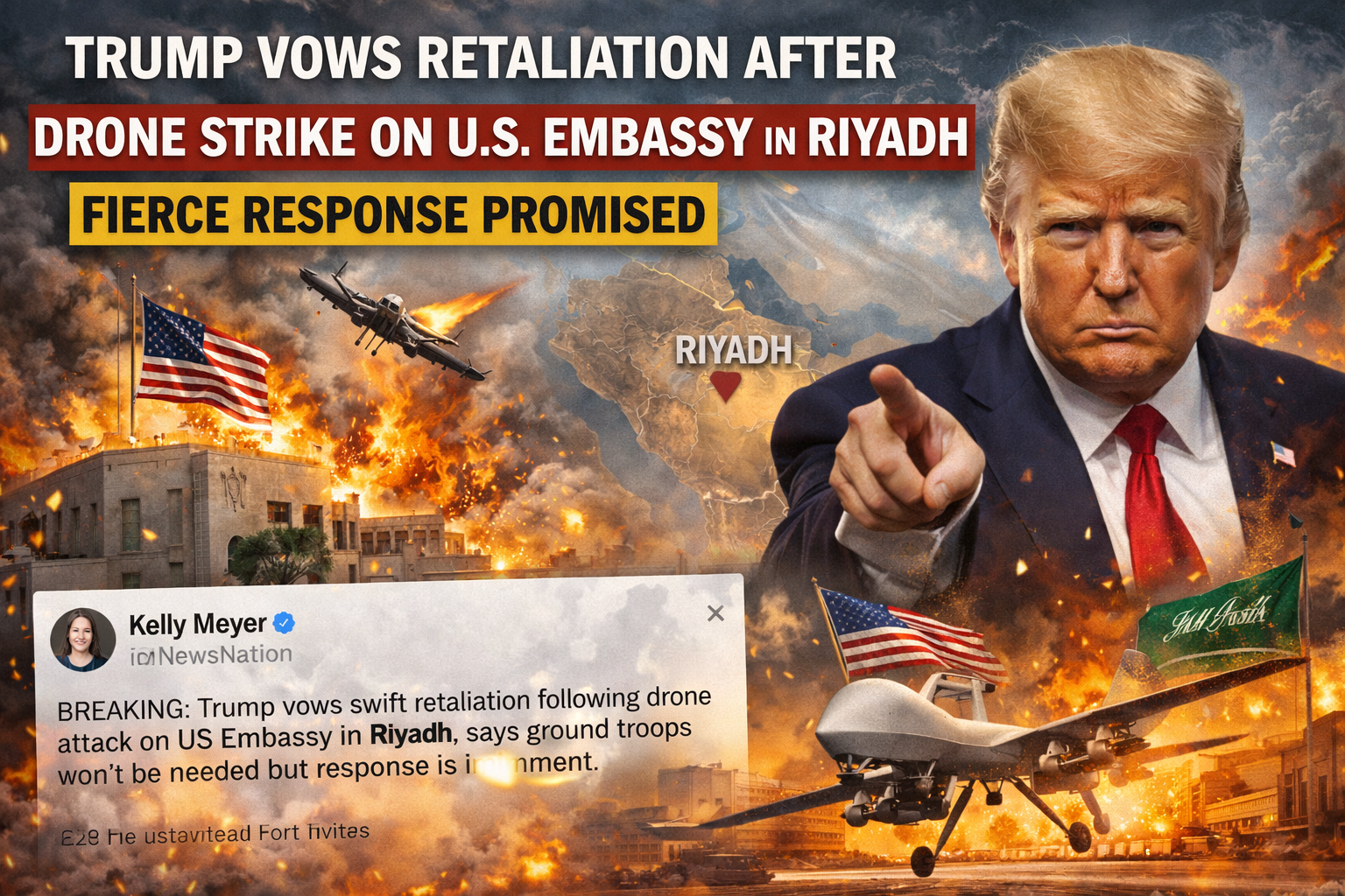 Washington, United States (HRNW): U.S. President Donald Trump has announced that the United States will soon retaliate following a reported drone strike on the American Embassy in Riyadh.