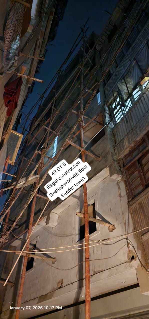 KARACHI (HRNW): The menace of illegal construction continues unabated in the Old City Area of District South, where building mafias—allegedly acting in collusion with corrupt officials from the Sindh Building Control Authority (SBCA)—are endangering lives for commercial gain. Recent reports from Old Town, near Alif Masjid, reveal that a residential plot (OT8/49) is being transformed into a high-rise structure featuring two commercial shops, a mezzanine floor, and five stories, all without an approved building plan or legal permits.