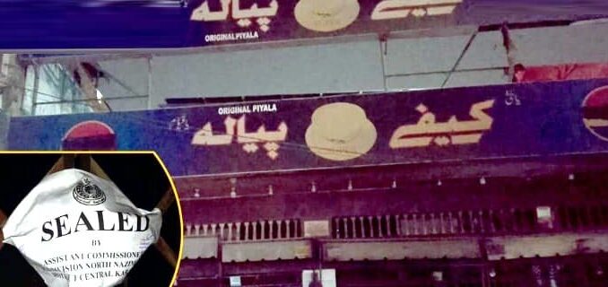 Karachi (HRNW)- During the ongoing anti-encroachment operation led by Assistant Commissioner North Nazimabad Hameer Ahmed, Cafe Piala Hotel was sealed.