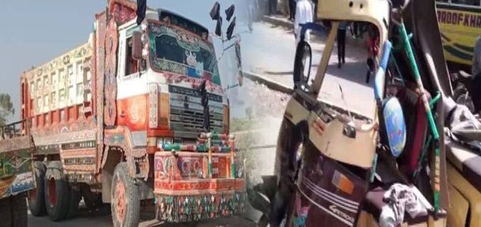 Karachi (HRNW)- A speeding dumper truck lost control in Malir Razaqabad area and collided with a rickshaw and a van, resulting in the death of rickshaw driver Karim Bakhsh Khoso on the spot while five others were injured.