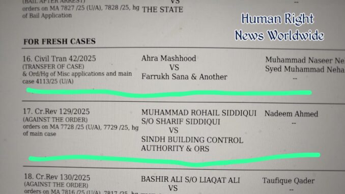 After hearing the arguments of Advocate Nadeem Ahmed Jamal, the Sindh High Court ordered to issue notices to the parties and fixed the next date of hearing as August 25, 2025.
