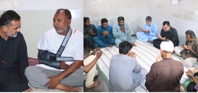 Karachi (HRNW)- Ameer Jamaat-e-Islami Sindh Kashif Saeed Sheikh and General Secretary Muhammad Yousuf reached Orangi Town and expressed their condolences to the families of the martyrs of the Thatta tragedy and visited the injured. The provincial Ameer expressed his sympathy and condolences to the families of workers Muhammad Asad Noor, Muhammad Abdul Rauf and Muhammad Bashar who were martyred in the Orangi Town bus accident. He also prayed for the forgiveness of the deceased and the speedy recovery of the injured. Kashif Saeed Sheikh said that the Thatta tragedy is a very sad incident, it is a great loss to precious human lives and a great loss to the Islamic Movement. Jamaat-e-Islami shares the grief of the affected families equally. Former provincial chiefs Muhammad Hussain Mehanti, Dr. Merajul Huda Siddiqui, Karachi deputy chief Abdul Wahab, general secretary Tawfiquddin, deputy caretaker Younis Barai, special assistant Zahid Hussain Rajpar and other officials were also present on the occasion. It may be recalled that yesterday, a bus carrying workers of Jamaat-e-Islami, West Orangi Town, UC-4, who were going to celebrate a picnic at Keenjhar Lake, met with an accident at Gharo, Thatta district. Five Jamaat-e-Islami workers and the bus conductor were killed in the accident and more than 30 people were injured.