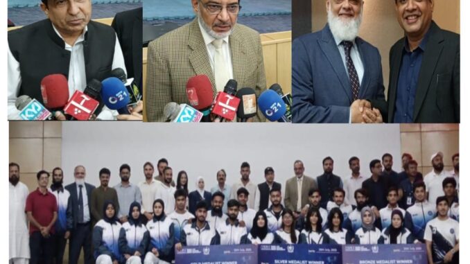 Karachi (HRNW)- Iqra University’s Sports Department recently held a grand ceremony to honor the outstanding achievements of its student-athletes. The event brought together esteemed dignitaries, faculty members, and students, and highlighted the university’s ongoing commitment to fostering sports excellence.
