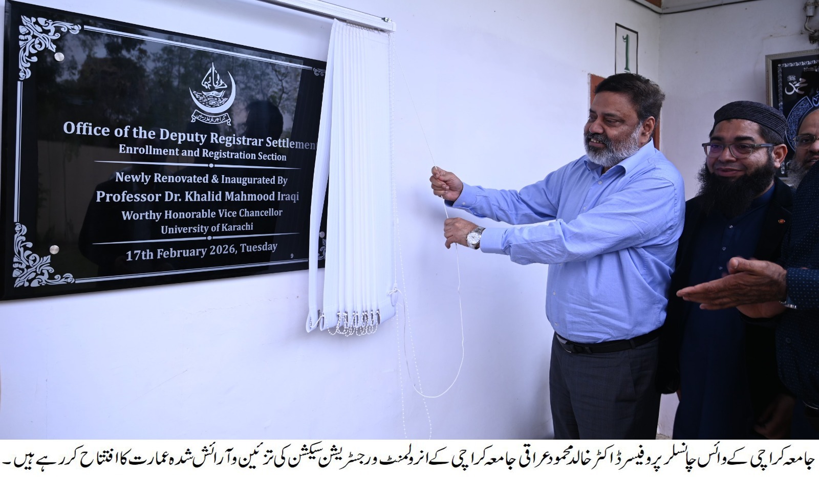 The Enrollment and Registration Department marks the first formal stage of a student’s academic journey. Improving this department essentially means providing ease, guidance, and confidence to our students. The Vice Chancellor of the University of Karachi Professor Dr Khalid Mahmood Iraqi expressed these views while addressing the inauguration ceremony of the renovated KU’s Enrollment and Registration Building.