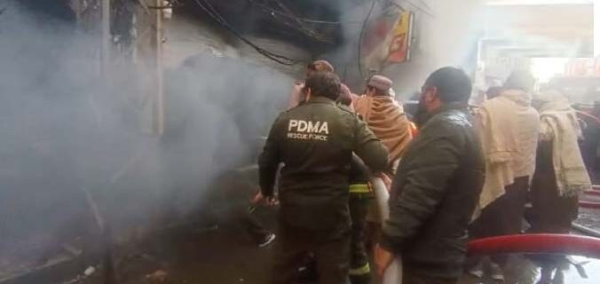 Quetta (HRNW) — A sudden fire broke out in a private plaza located on Prince Road, reducing several shops inside the building to ashes. According to rescue officials, the fire has been brought under control, and cooling operations are underway.