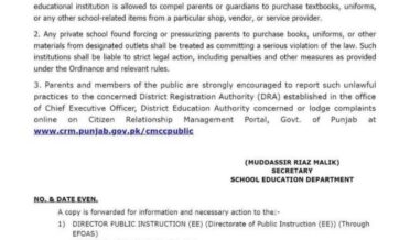 نجی سکول والدین پر مخصوص کتب و یونیفارم خریدنے کا دباؤ نہیں ڈال سکتے