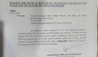 ایمان مزاری اور ہادی علی چٹھہ 14 روز کے جوڈیشل ریمانڈ پر جیل بھیج دیے گئے