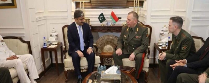 اسلام آباد(ایچ آراین ڈبلیو)سیکرٹری دفاع لیفٹیننٹ جنرل (ریٹائرڈ) محمد علی سے بیلاروس کے وزیر دفاع کی ملاقات،فریقین کادوطرفہ دفاعی تعاون کو بڑھانے کے عزم کا اعادہ