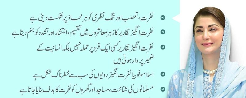 •نفرت انگیز تقاریر کا زہر معاشروں میں تقسیم، انتشار اور تشدد کو جنم دیتا ہے-•نفرت انگیز تقاریر کسی ایک فرد پر حملہ نہیں بلکہ انسانیت کےضمیر پر وار ہوتی ہیں-اسلاموفوبیا نفرت انگیز رویوں کی سب سے خطرناک شکل ہے-مسلمانوں کی شناخت، مساجد اور گھروں کو نفرت کا ہدف بنایا جاتا ہے-