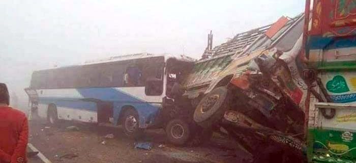 خانیوال(ایچ آراین ڈبلیو)موٹروے ایم فور پر خانیوال کے قریب بس اور ٹریلر کے درمیان خوفناک تصادم کے نتیجے میں بس کی ایک ہوسٹس جاں بحق جبکہ چار مسافر زخمی ہو گئے۔ ترجمان موٹروے پولیس کے مطابق حادثہ ڈرائیور کو نیند آنے کے باعث پیش آیا۔ حادثے کا شکار ہونے والی بس لاہور سے ملتان جا رہی تھی۔ زخمیوں کو فوری طور پر قریبی اسپتال منتقل کر دیا گیا۔