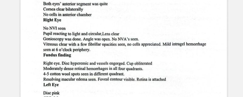 رپورٹ کے مطابق سنٹرل میکیولر تھکنس 550 سے کم ہو کر 350 ہو گئی ہے جو نمایاں بہتری قرار دی گئی ہے۔ متاثرہ دائیں آنکھ کی بینائی 6/36 سے بہتر ہو کر 6/9 تک پہنچ گئی ہے جو موجودہ مرحلے پر تسلی بخش قرار دی گئی۔ بغیر عینک دائیں آنکھ کی بینائی 6/24 جبکہ بائیں آنکھ کی 6/9 ریکارڈ کی گئی، جبکہ عینک کے استعمال کے ساتھ دائیں آنکھ 6/9 اور بائیں آنکھ 6/6 ہو گئی ہے۔