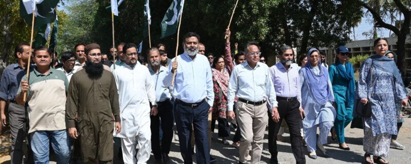 ریلی میں رجسٹرار پروفیسر ڈاکٹر عمران احمد صدیقی، مختلف کلیہ جات کے ڈینز، شعبہ جات کے صدور، اساتذہ، طلبہ اور انتظامی عملے کی بڑی تعداد نے شرکت کی۔ شرکاء نے قومی پرچم اٹھا رکھے تھے اور “پاک فوج زندہ باد” اور “پاکستان زندہ باد” کے فلک شگاف نعرے لگائے۔