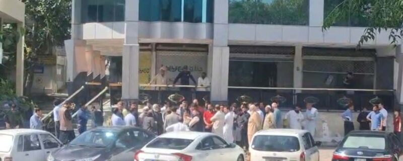 احتجاج کے دوران مظاہرین نے بلیو ایریا میں واقع سردار پلازہ میں داخل ہونے کی کوشش کی، تاہم سیکیورٹی عملے نے انہیں اندر جانے سے روک دیا۔ اس پر متاثرین نے سردار پلازہ کے مرکزی دروازے پر دھرنا دے دیا۔
