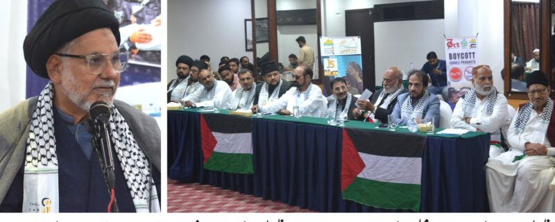 مقررین نے یوم نکبہ کی مناسبت سے گفتگو کرتے ہوئے کہاکہ فلسطین پر غاصب صیہونی ریاست اسرائیل کے قبضہ کو 77سال بیت چکے ہیں اور آج فلسطینی عوام کے لئے ہر دن ایک نکبہ کی مانند ہے۔ پوری دنیا فلسطینیوں کی نسل کشی کا تماشہ دیکھ رہی ہے۔ انہوںنے کہاکہ قائد اعظم محمد علی جناح نے واضح کہا تھا کہ فلسطین کے حقوق سے دستبردار نہیں ہوں گے۔ قائد اعظم نے اسرائیل کو ایک ناجائز اور غاصب ریاست قرار دیا ہے تاہم فلسطین ہمیشہ سے فلسطینیوں کا وطن رہاہے اور وطن رہے گا ۔مقررین نے فلسطینی عوام کے حق واپسی کی بھرپور حمایت کی اور کہا کہ سندھ بھر میں ذاکرین کرام مجالس کے اجتماعات میں مسئلہ فلسطین کو خصوصی اہمیت دیں گے اور مسئلہ فلسطین کو اجاگر کرنے کے لئے مجالس میں فلسطین کاز کی حمایت کو اجاگر کیا جائے گا۔ذاکرین نے کانفرنس میں قرار داد منظور کرتے ہوئے مسلم دنیا کے حکمرانوں سے اپیل کی کہ اسرائیل کے ساتھ تعلقات منقطع کریں اور عوام سے اپیل کی ہے کہ امریکی و اسرائیلی مصنوعات کا بائیکاٹ ہر سطح پر جاری رکھا جائے ۔ غز ہ کی ناکہ بندی کے خاتمہ کے لئے تمام مسلمان ممالک کردار ادا کریں۔ مقررین کاکہنا تھا کہ 15مئی کو کراچی پریس کلب پر یوم نکبہ کے موقع پر عظیم الشان احتجاجی مظاہرہ کیا جائے گا عوام ا س میں اپنی شرکت کو یقینی بنائیں۔