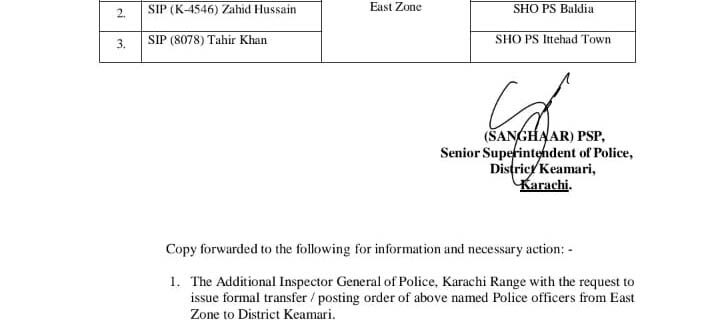 کراچی(ایچ آراین ڈبلیو)سندھ پولیس میں انتظامی تقرریوں کے تحت ایسٹ زون سے تعلق رکھنے والے تین پولیس افسران کو ضلع کیماڑی کے مختلف تھانوں میں بطور تھانیدار (ایس ایچ او) تعینات کر دیا گیا ہے۔نوٹیفکیشن کے مطابق انسپیکٹر دیدار حسین کو تھانہ مدینہ کالونی کا ایس ایچ او مقرر کر دیا گیا ہے، جبکہ سب انسپیکٹر زاہد حسین کو تھانہ بلدیہ میں ایس ایچ او تعینات کیا گیا ہے۔