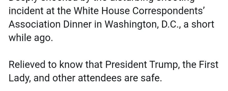 **اسلام آباد (ایچ آراین ڈبلیو):** وزیرِ اعظم شہباز شریف نے واشنگٹن میں وائٹ ہاؤس کوریسپونڈنٹس ڈنر کے دوران پیش آنے والے فائرنگ کے واقعے پر گہری تشویش اور صدمے کا اظہار کیا ہے۔