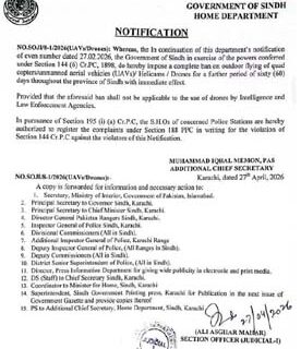 سندھ حکومت کے مطابق موجودہ سیکیورٹی خدشات کے باعث حفاظتی اقدامات کے تحت ڈرونز کے ممکنہ غلط استعمال کو روکنا ناگزیر ہو گیا ہے۔ جاری کردہ نوٹیفکیشن میں واضح کیا گیا ہے کہ پابندی کا اطلاق پورے سندھ میں فوری طور پر ہوگا اور آئندہ احکامات تک برقرار رہے گا۔