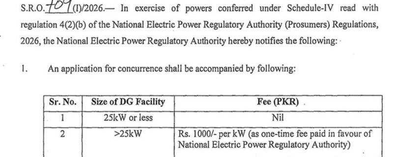 نیشنل پاور ریگولیٹری اتھارٹی (نیپرا) نے پاور ڈویژن کی درخواست منظور کر لی، جس کے بعد نیٹ میٹرنگ کے حامل 25 کلو واٹ اور اس سے کم سولر صارفین کے لیے لائسنس کی شرط باضابطہ طور پر ختم کر دی گئی ہے۔
