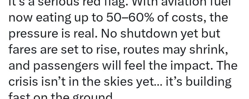 ایئرلائنز حکام کے مطابق ایندھن کی قیمتوں میں مسلسل اضافہ ان کے آپریشنل اخراجات کو شدید متاثر کر رہا ہے، جس کے باعث کرایوں میں اضافہ اور پروازوں کی تعداد میں کمی جیسے اقدامات پر غور کیا جا رہا ہے۔