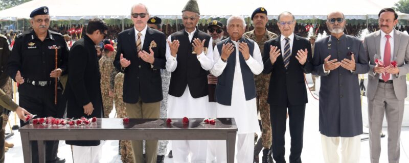 حاضرسروس وریٹائرڈ فوجی اورسینئرسول آفیسرزنے یادگار شہداء پرپھول رکھے اوربلندی درجات کیلئے دعا کی